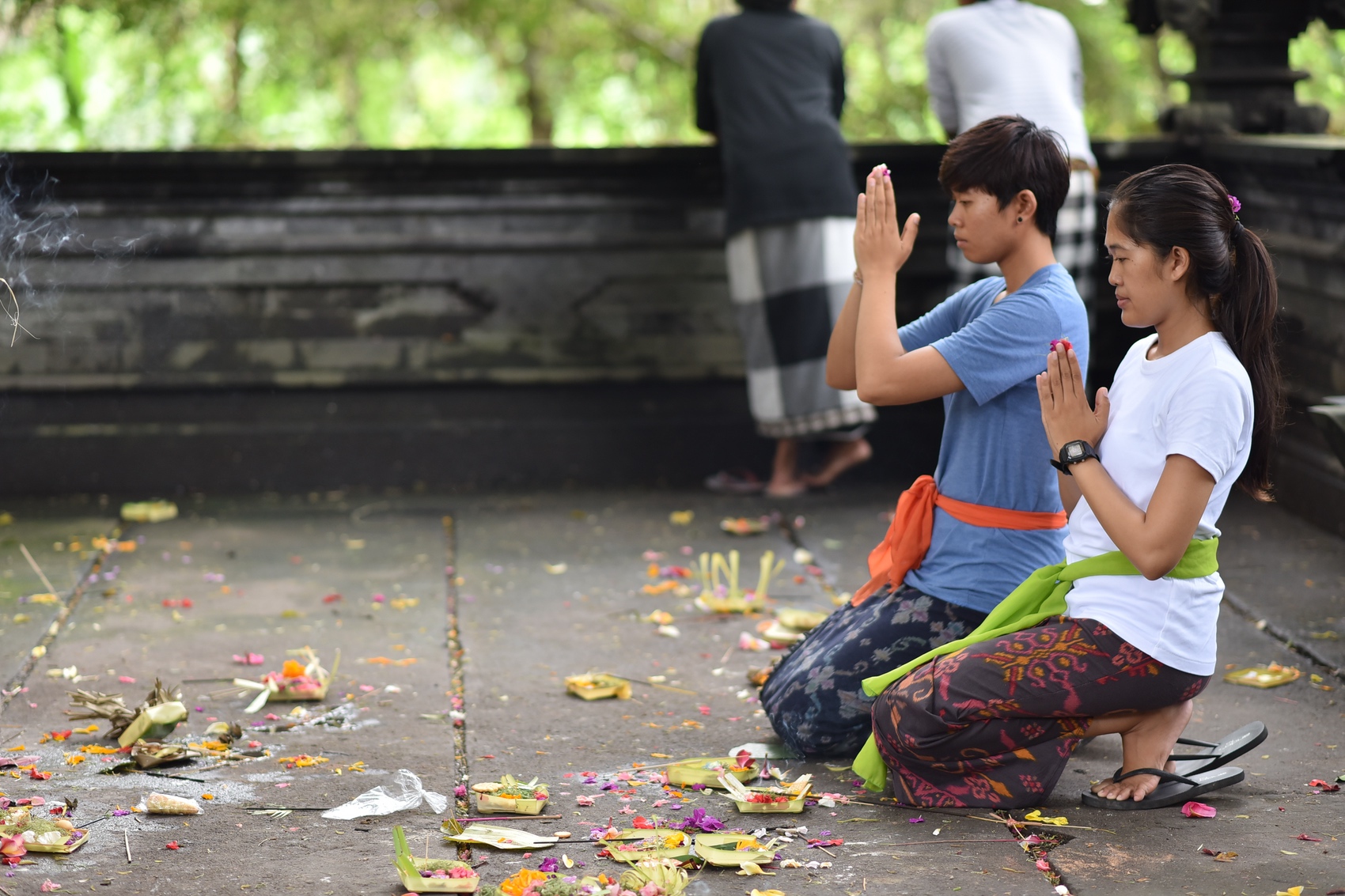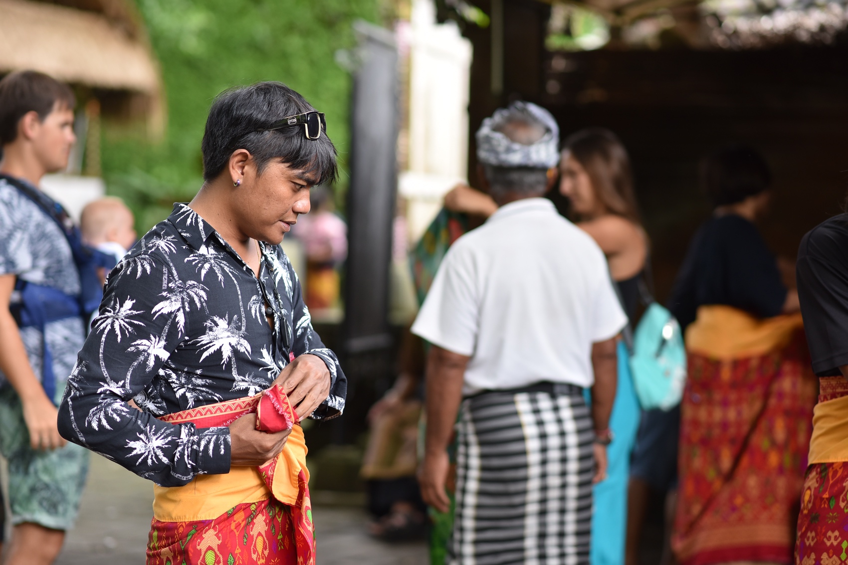 寺院に入る前に「Kamen」という名前のバリ人の伝統な布を着ます。