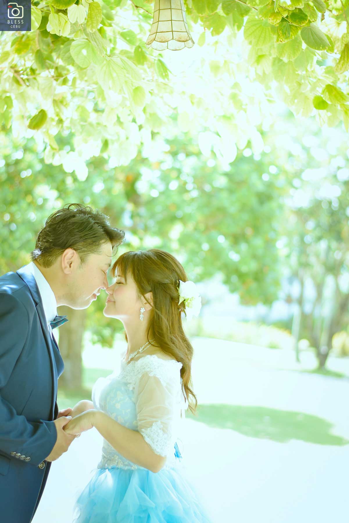 オプションで、ドレスレンタル・タキシードレンタル・花冠をご利用いただき、朝からご仕度され、11:30〜12:30頃に撮影を行いました。