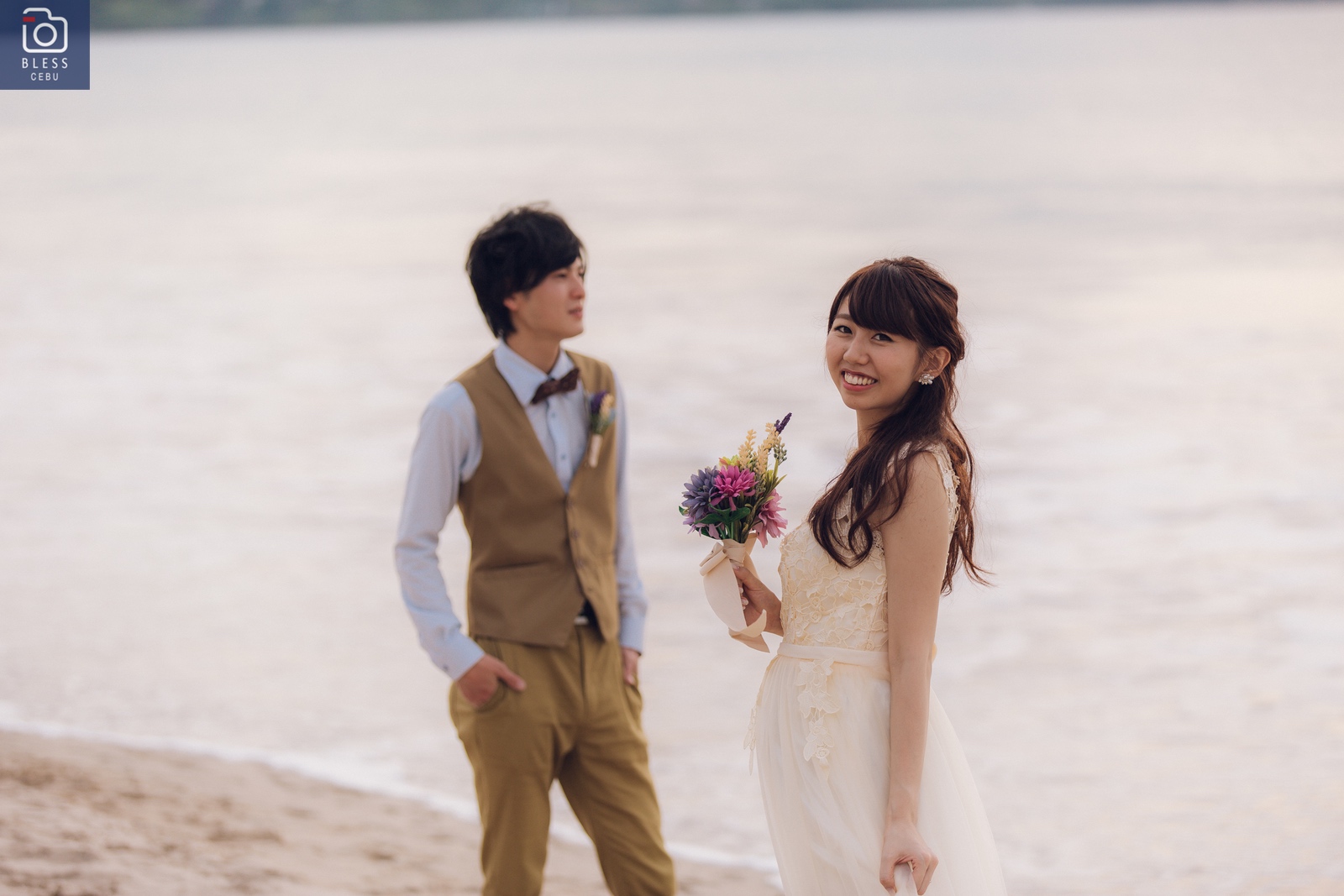 素敵なドレスとセットアップをお持ち込みされ、サンセットタイムのジンバランビーチで撮影しました。