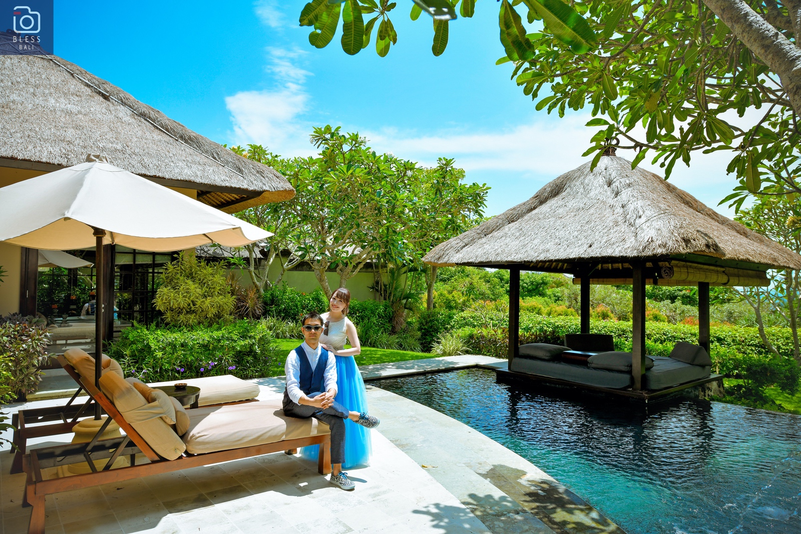 半日プランでは、まずお泊まりのアヤナヴィラでプライベート感のある撮影からスタート。