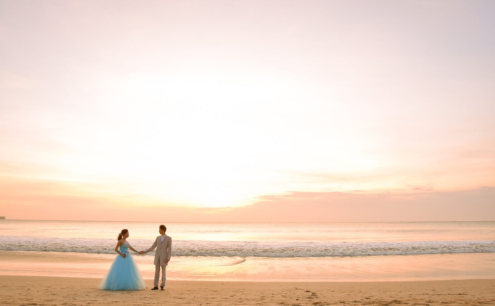 デイビーチとサンセットビーチでの2ロケーション撮影でした。 K&G様のタキシードとカラードレスはお持込です。 * K&G様、大切な想い出作りにブレスをお選びいただき、ありがとうございました。 末長くお幸せに!