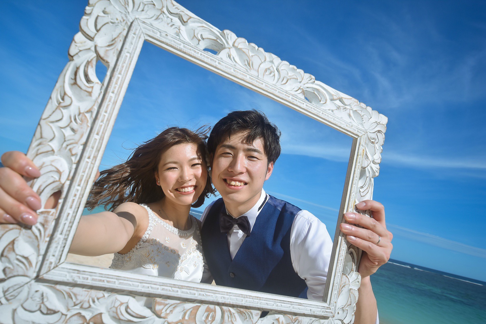 無料レンタルの白い額縁、白い旗を使ったショットも!