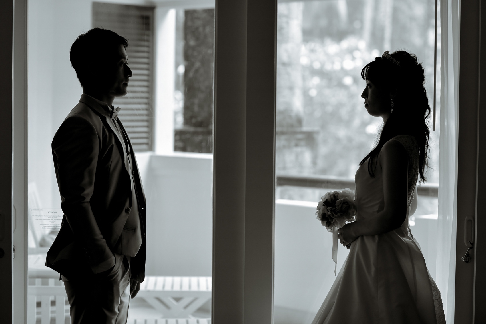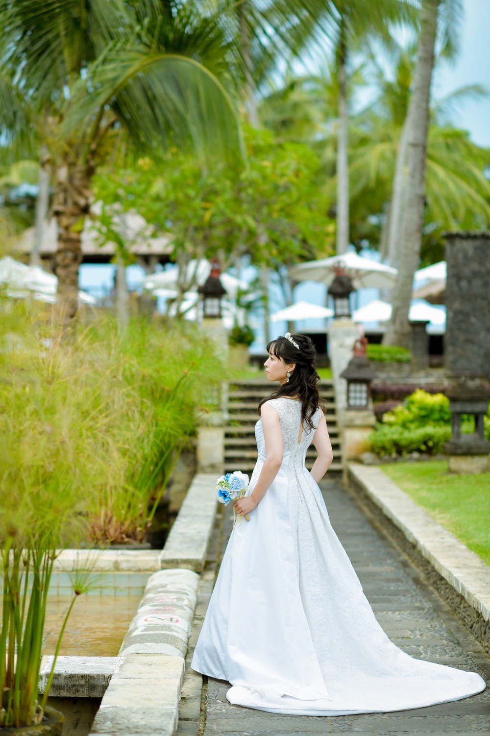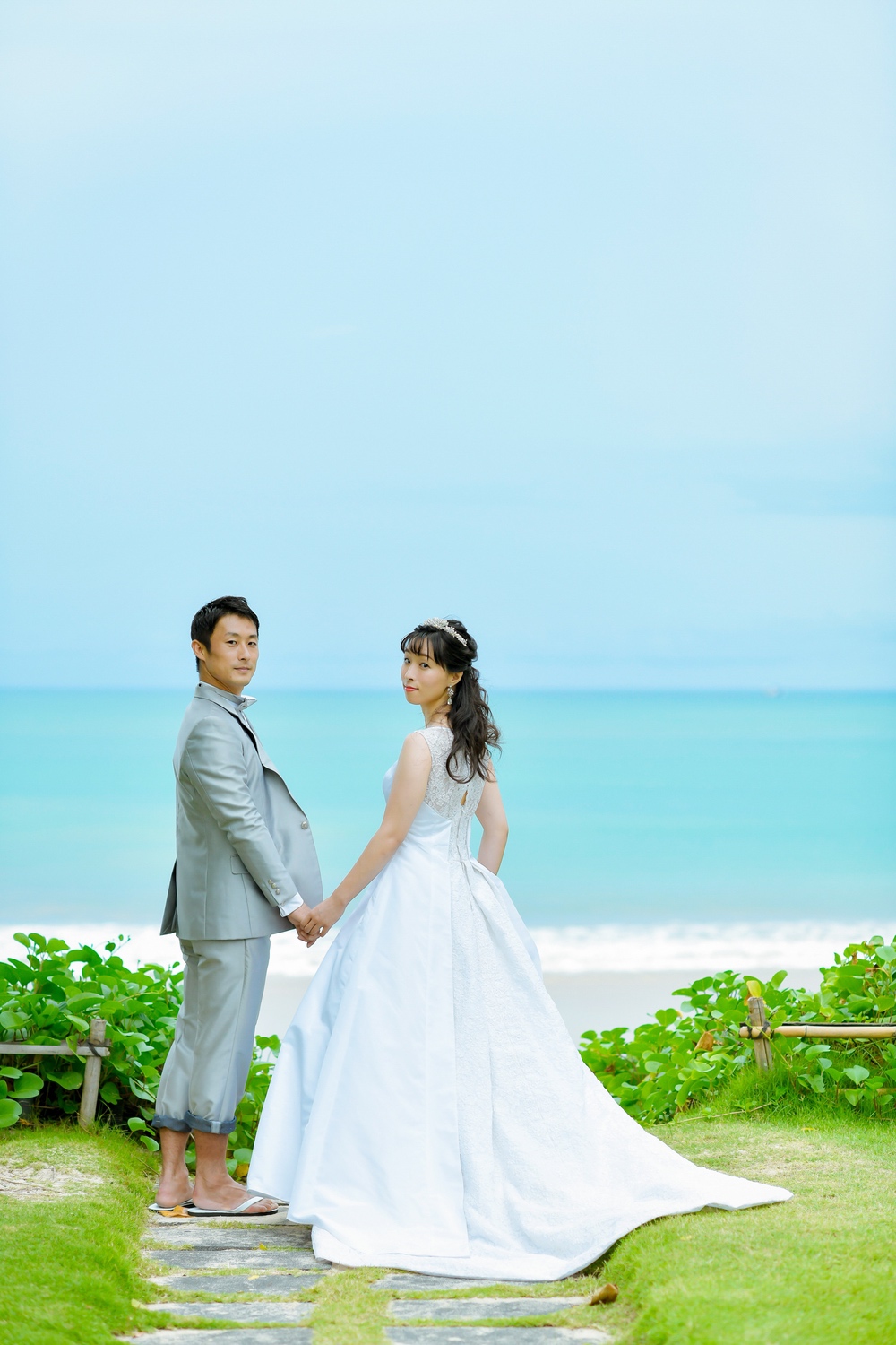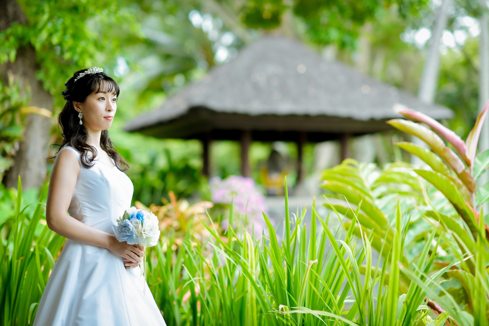 花嫁S様はドレスサロンLOVEISで、シンプルなAラインドレスをお選びいただきました。