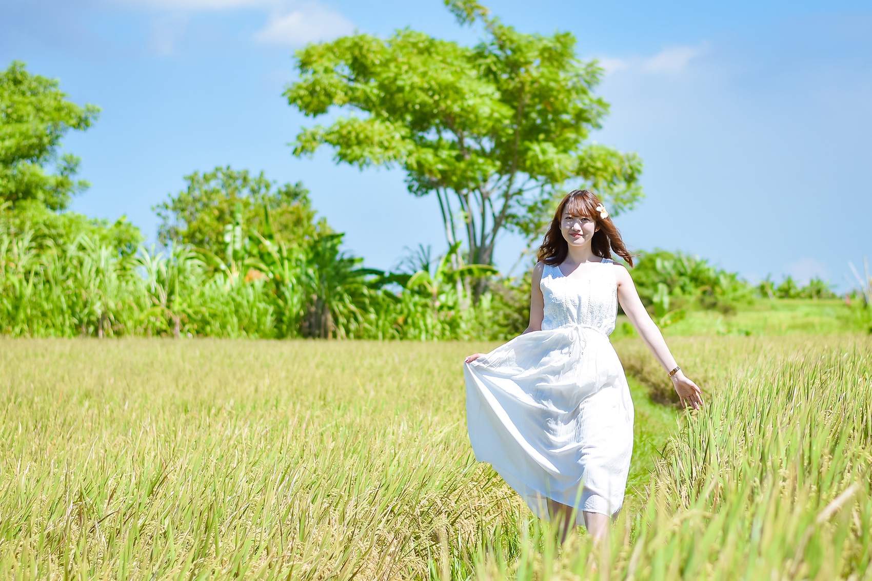 ウブドエリアの田園風景、街中、寺院、ブランコで撮影しました。