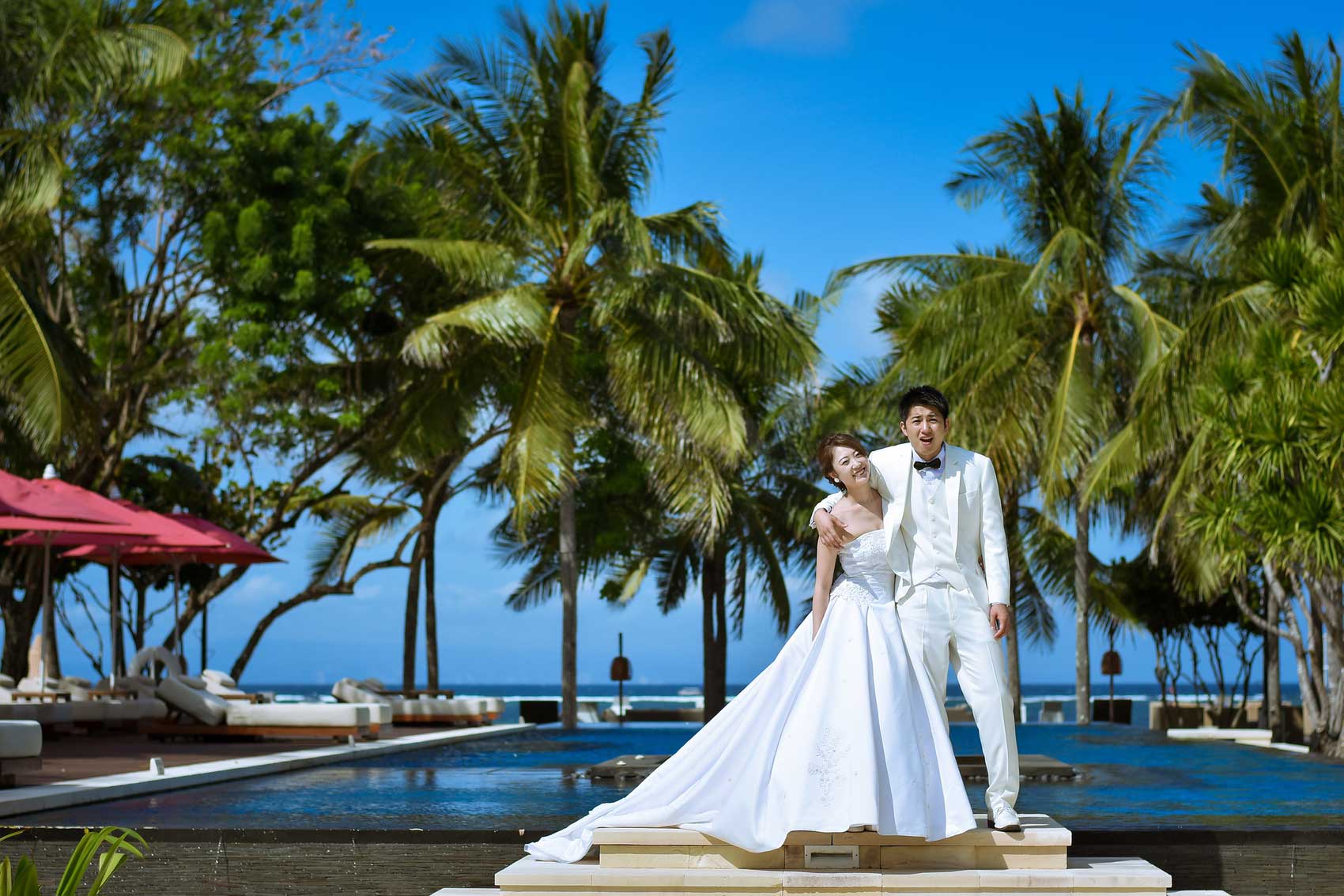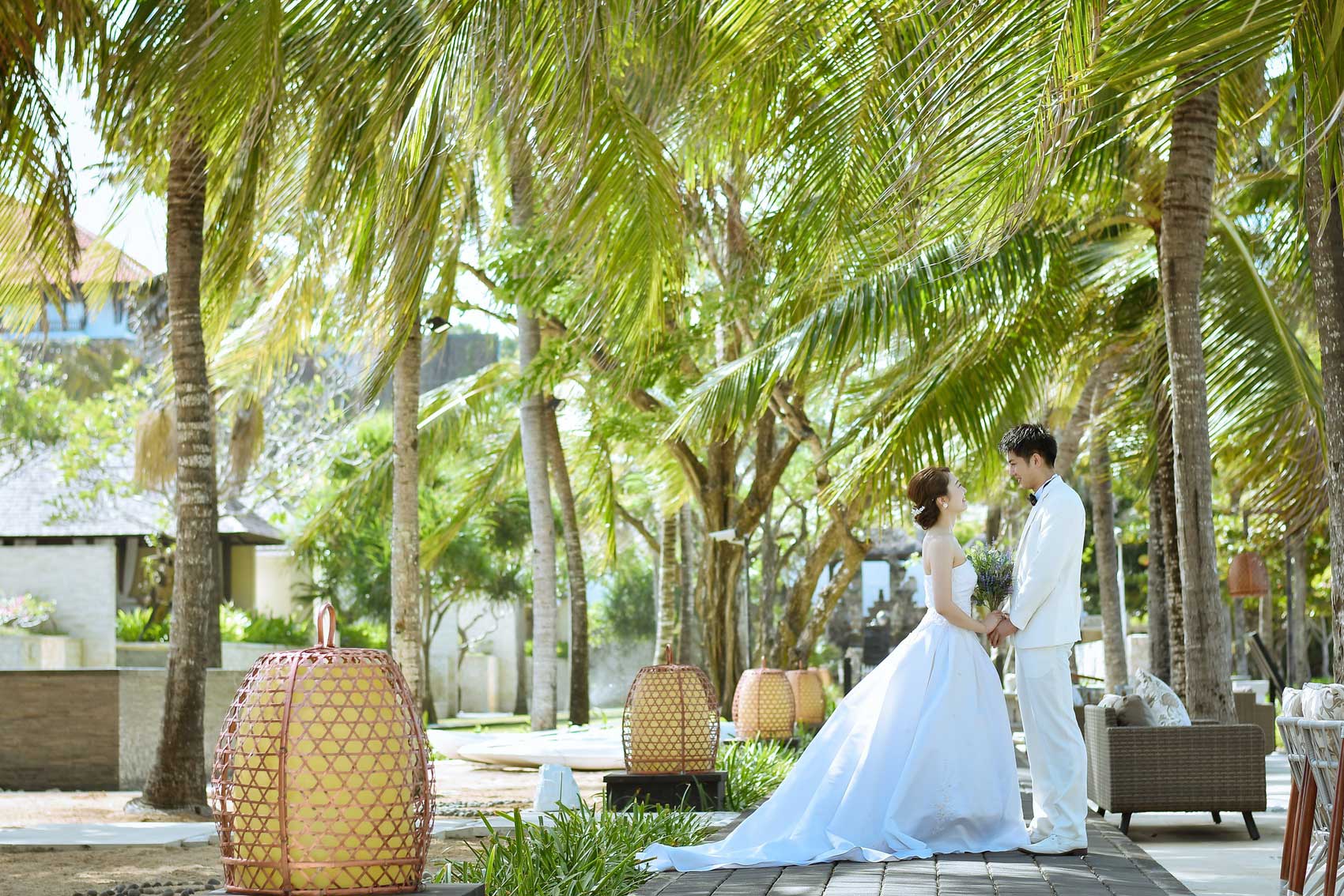 ウルシャンティでは、ホテルのガーデンやプールサイド、白い階段、ビーチでも撮影できます。