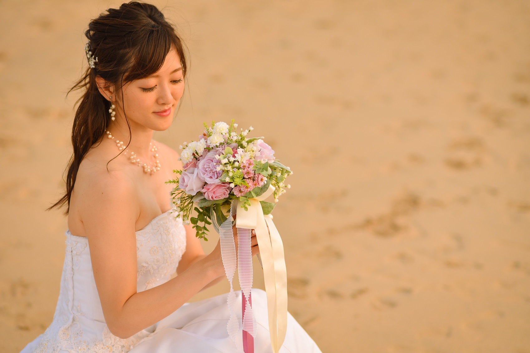 ブーケは日本製のアーティフィシャルフラワー。ピンク色が一番人気です♡