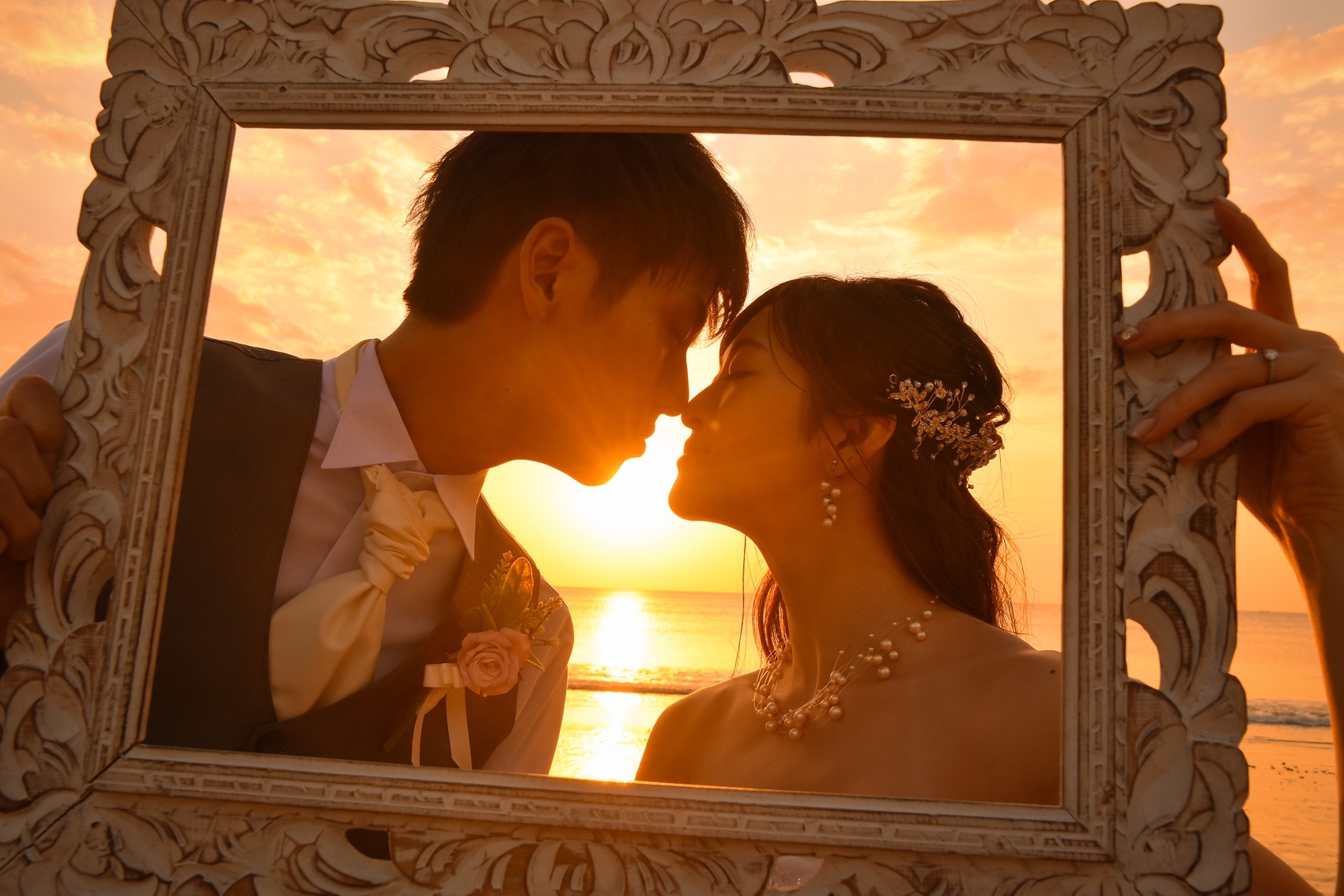 とても絵になるお二人。サンセットタイムには最高に綺麗な夕日を見ることができました。