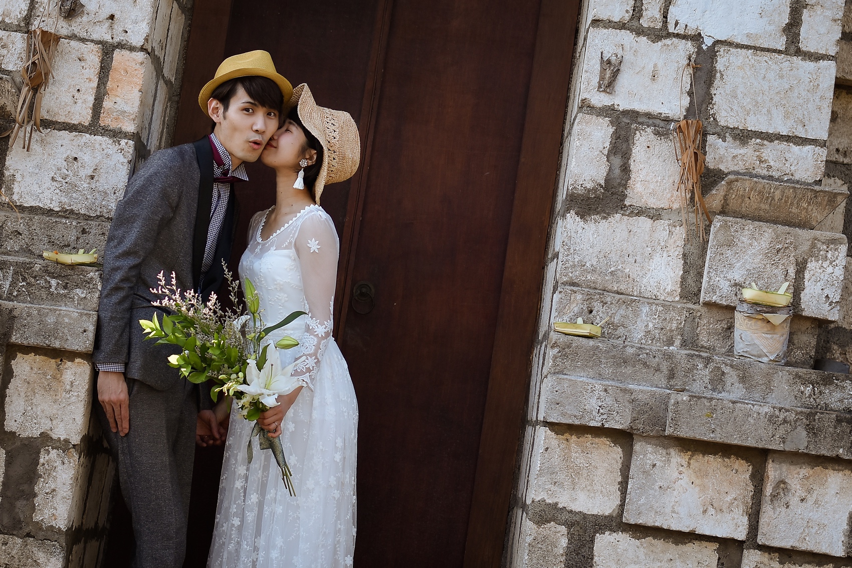 お揃いの帽子屋白ユリブーケを持ってきてくれました♡