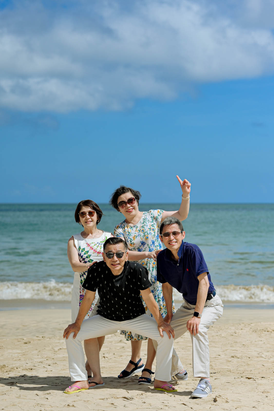 N様ご家族は、リゾートカジュアルな私服でご参加くださいました。ワンピースやポロシャツなど、バリらしさを感じる装いがビーチの景色にぴったり。