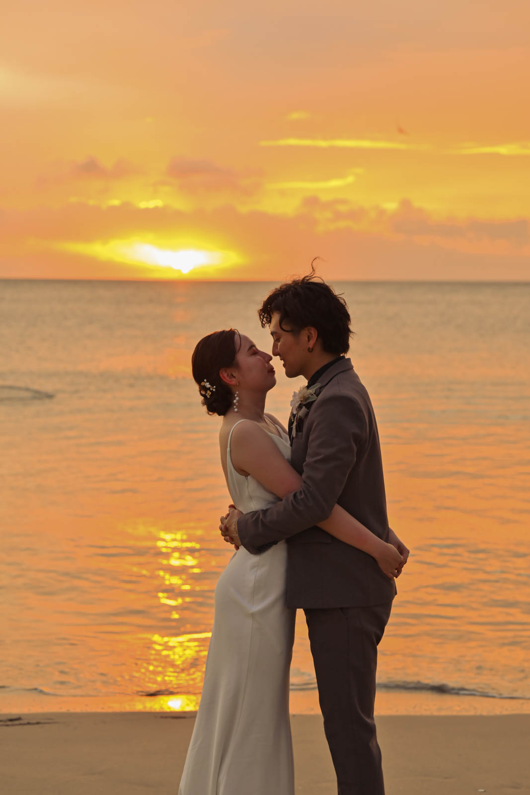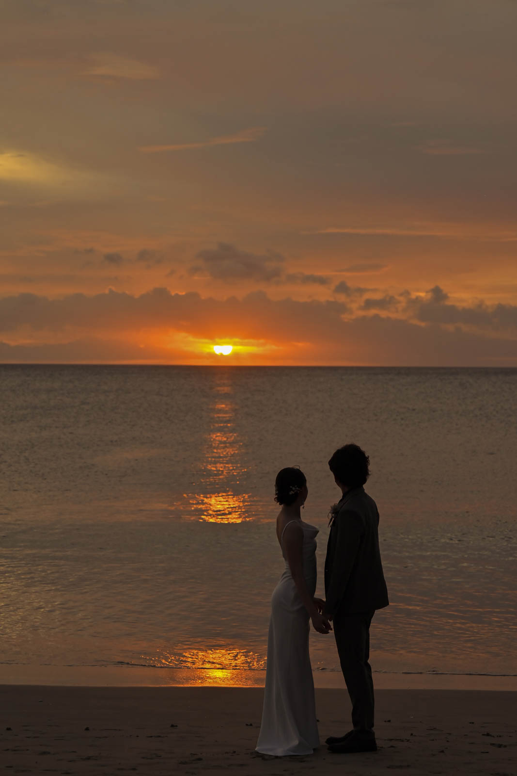 特に、逆光を活かしたシルエットショットは感動的。柔らかい夕陽と波音が、おふたりの空気感をより引き立て、バリ島らしい情景を完璧に写し出しています。