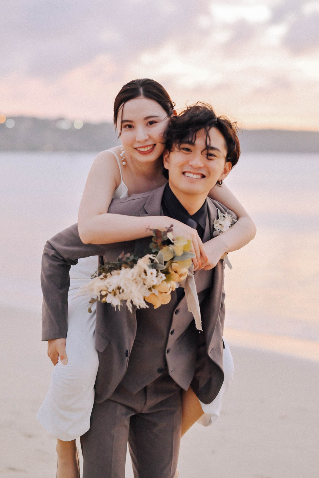 K&S様は、明るい日差しと青い海を背景に、ナチュラルで飾らない笑顔をたくさん見せてくださいました。