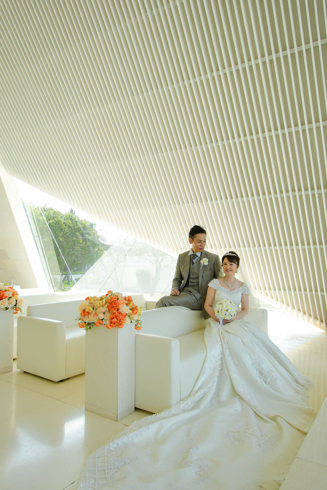 次の日、私は別のウェディング撮影でコンラッドホテルに行ったところ、ホテルの中でお二人と偶然会うことができました。撮影が終わった後に、カメラマンとしてじゃなくても、お友達のようになれるとすごく嬉しいです。