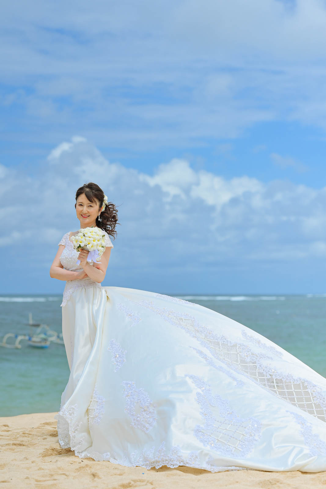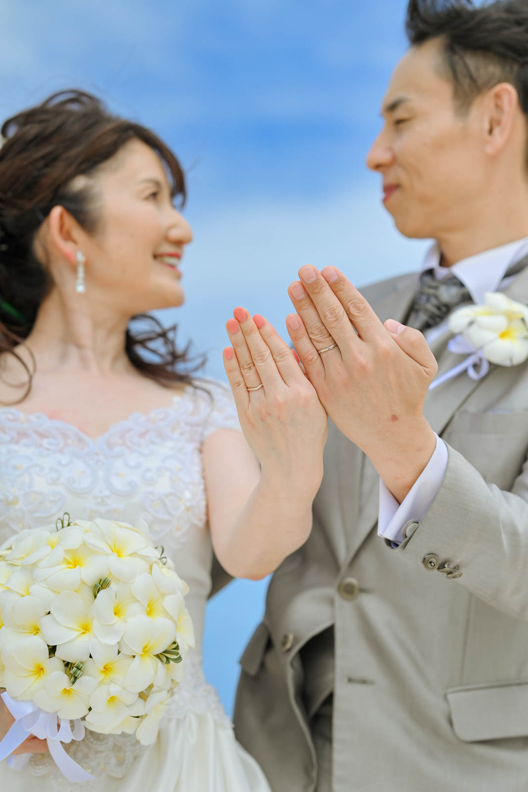 おかげさまで、ゲゲールビーチに着いてからどんどんいい天気になりました。お二人の笑顔や雰囲気もすてきでした。ポーズの取り方や立ち方もすごく上手です。