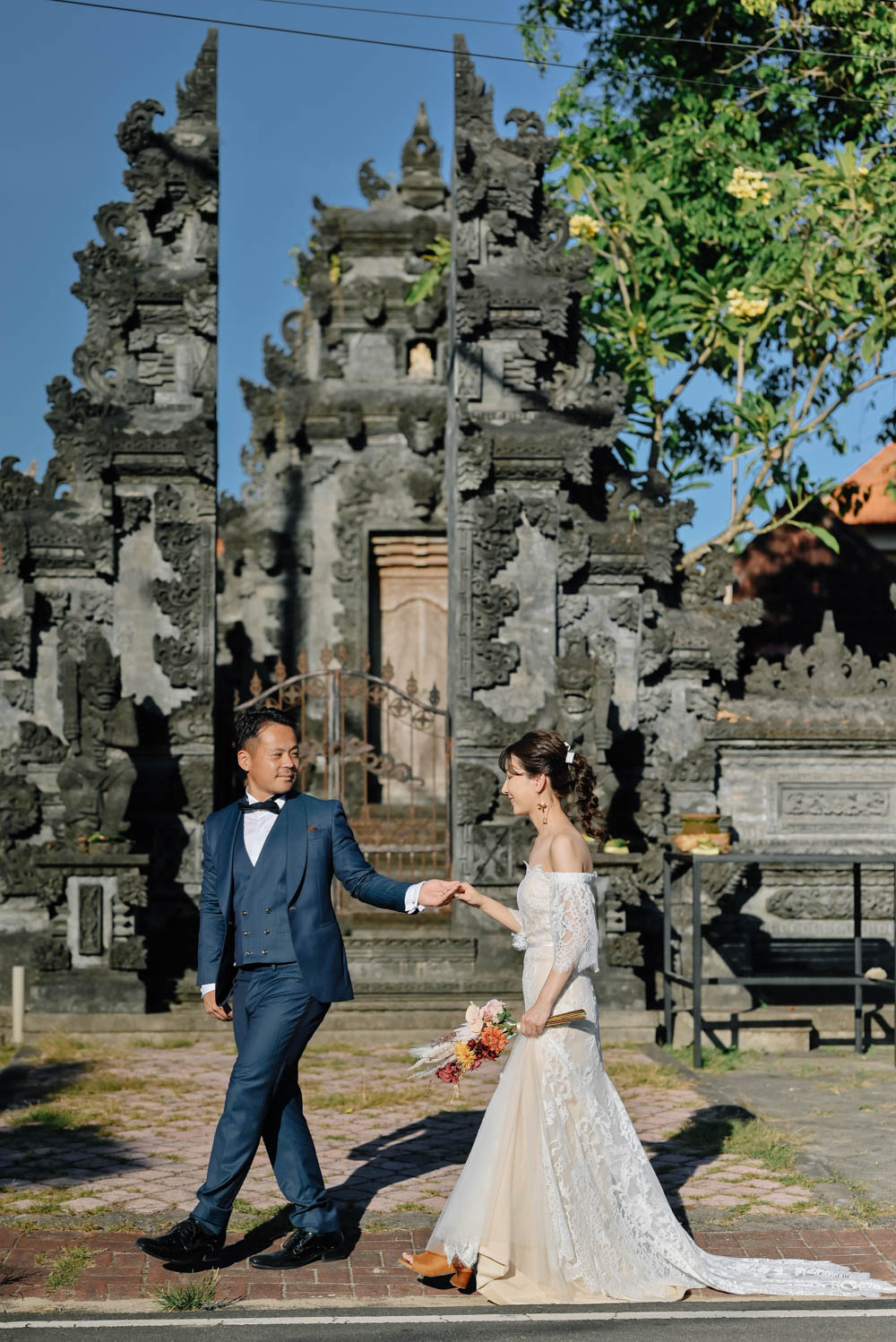 バリ島らしい街フォト、ストリートフォトは本当にお勧めです。特に恥ずかしがり屋の人には、あまりポーズを気にする必要がないので、緊張せずに自然な姿を残せます。地元の人々と挨拶をしながら一緒に散歩して、活気に満ちた写真を撮ることができます。