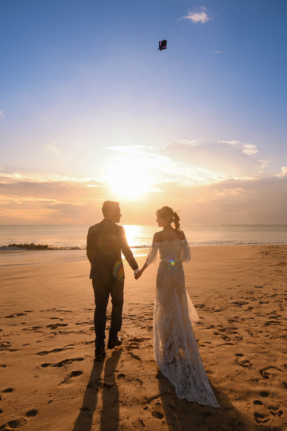 最後に夕陽が沈んだ後のビーチでジャンプしたり走り回ったり、お二人は最後まで楽しく遊んで動いてくれました。