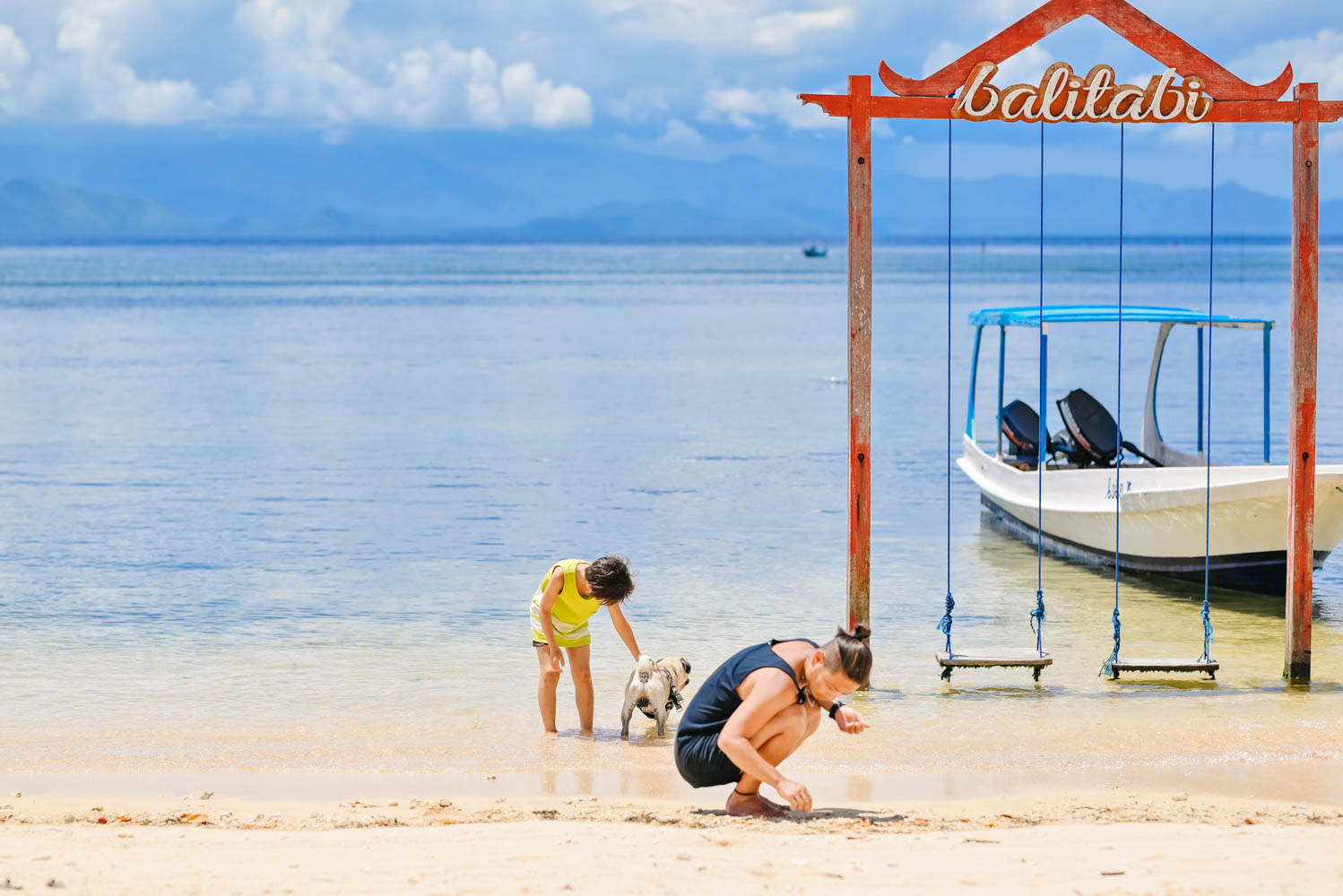 最初はカメラの前で恥ずかしがっていた息子のR君。レンタルバイクで島内ツアーに出発すると、R君はレンボンガン島の雰囲気に喜んでテンションが上がっていました!