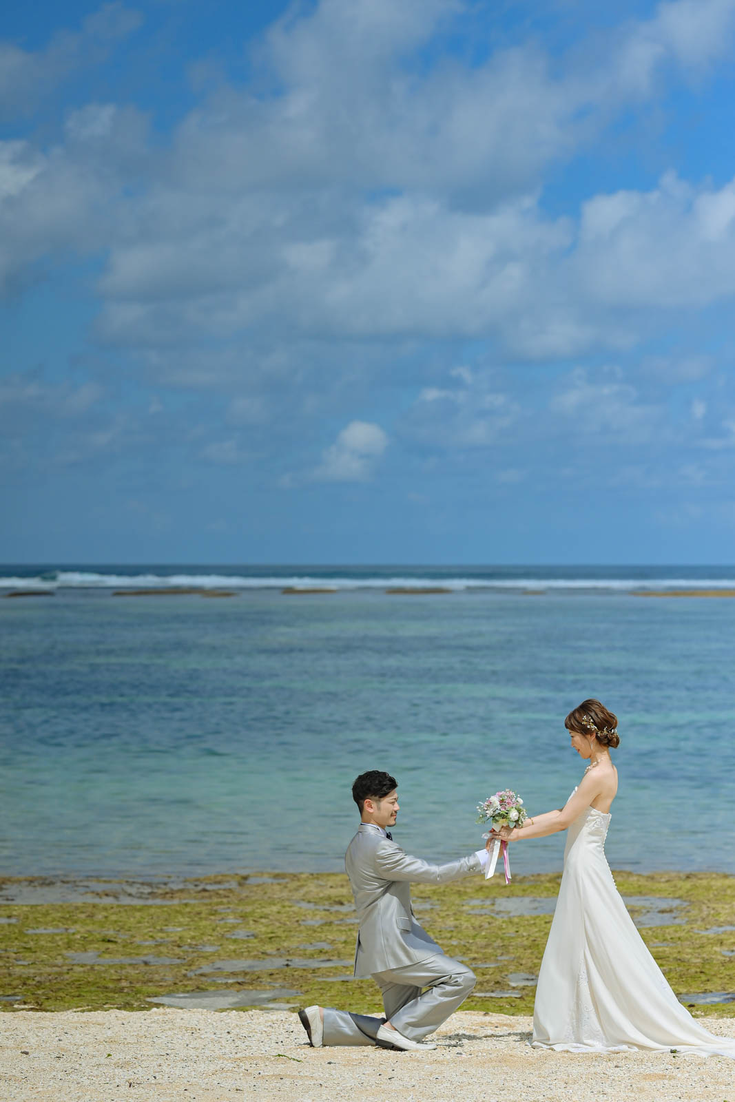 パンダワビーチでビーチフォトを撮影をして、ドローンも飛ばしました。とっても暑い日でしたが、お二人様は素敵な笑顔を見せてくれて、楽しく撮影をしました。