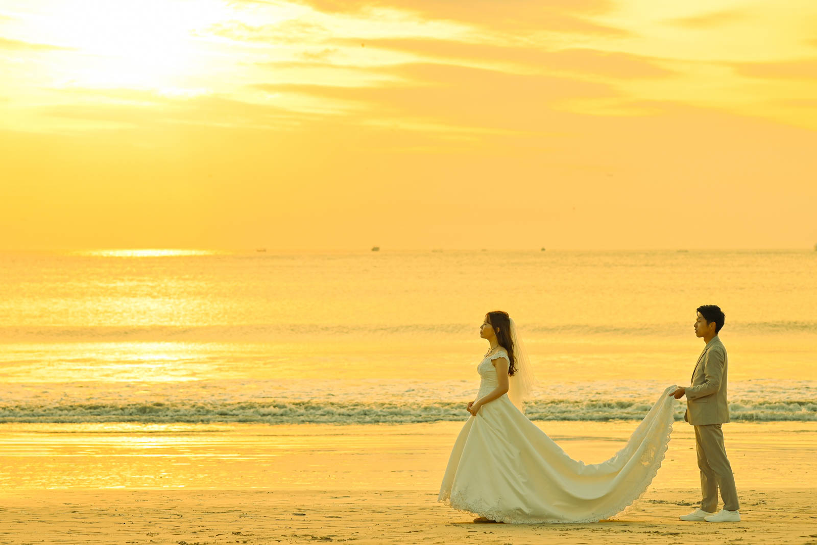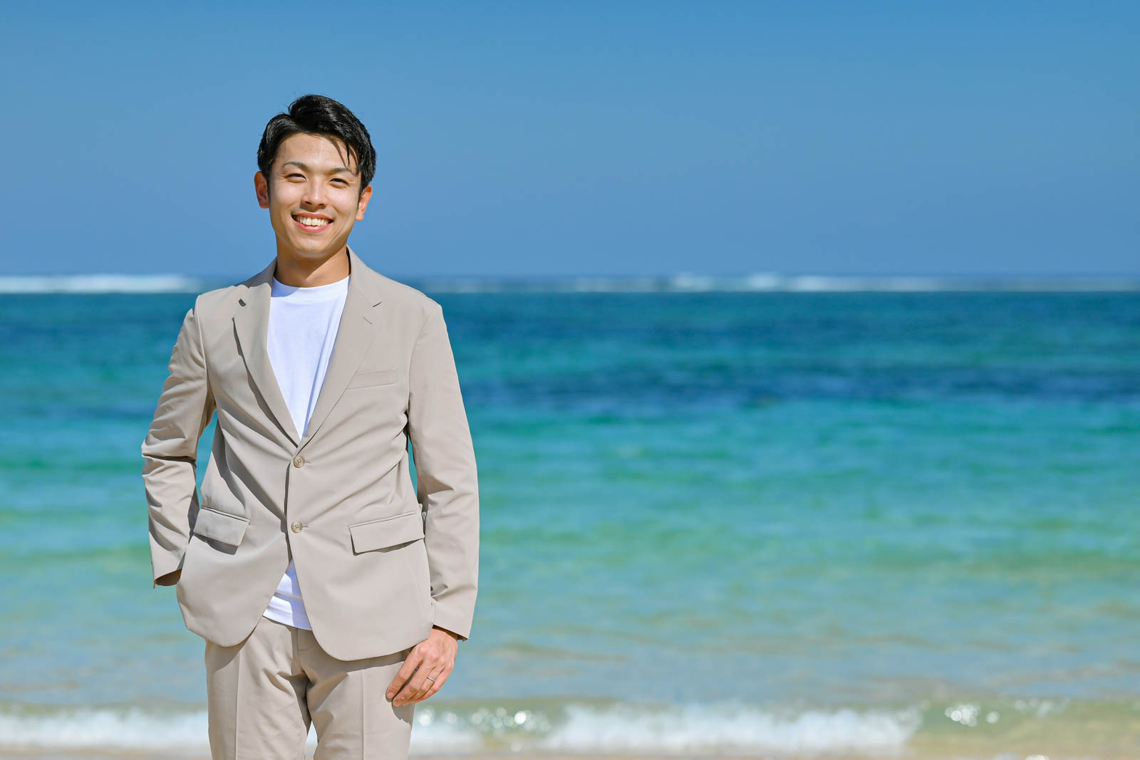 ビーチでは、ビールビンタン瓶や白い額縁も使って楽しく撮影しました。