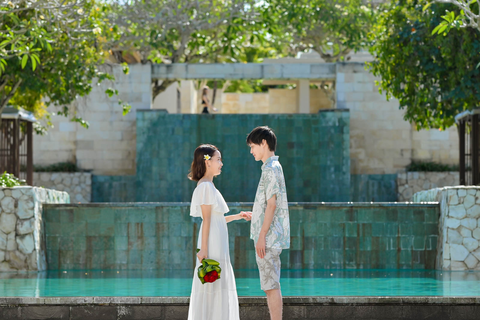 お客様は大阪からお越しのS様とA様で、初めてのバリだそうです。宿泊先はヌサドゥアにある『ザ・バレ』。このホテルでは、宿泊していればホテル敷地内でのフォトセッションが可能です。
