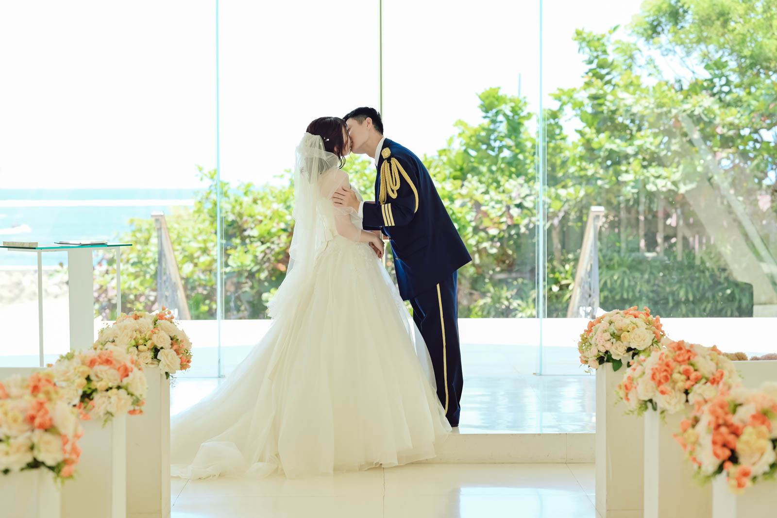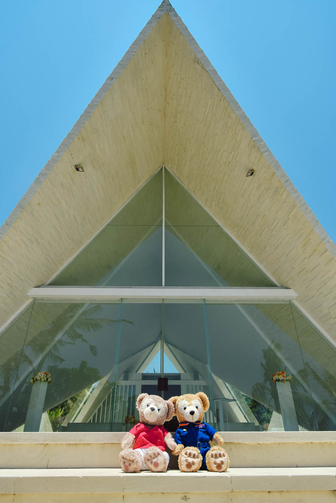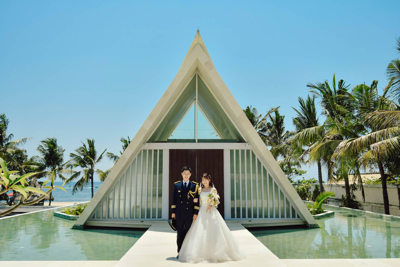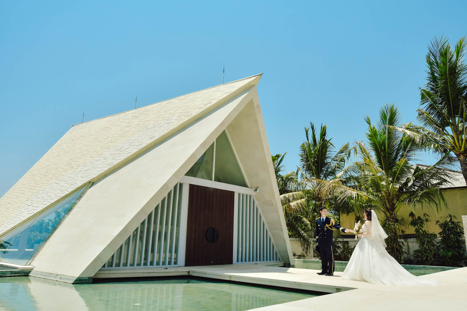 バリ島で人気のウルシャンティ・チャペルにて、神聖な空間でのチャペル撮影からスタート。