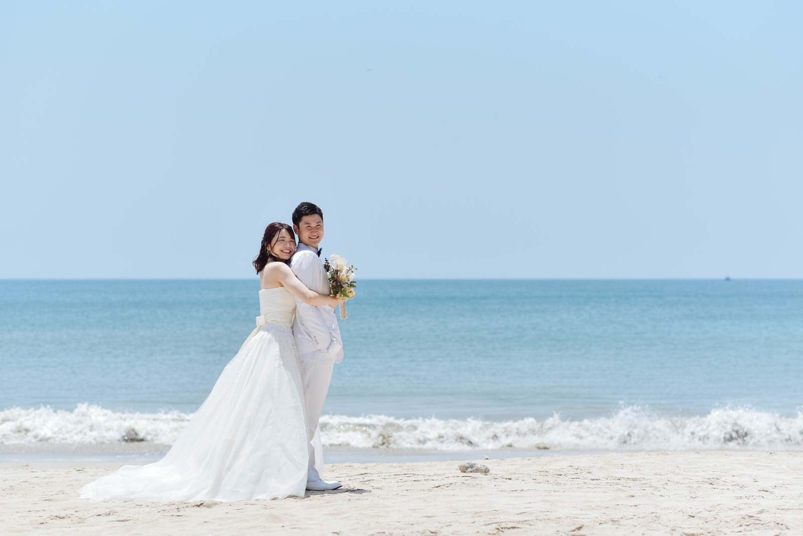 ご新婦様のヘアメイク・ご新郎様のヘアセットは、日本人スタイリストが丁寧に担当。カメラマンは日本人フォトグラファーのディアが担当し、お二人の自然な笑顔と空気感をしっかりとカメラに収めました📷🩷