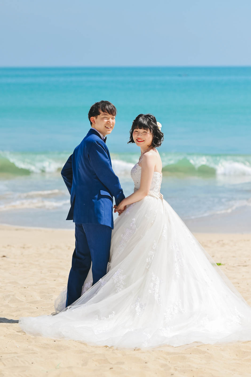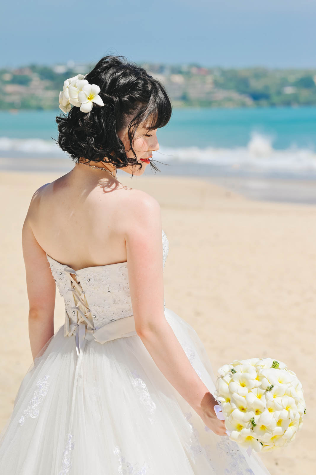 Y様とA様は、クタ地区の Aloft Bali にご宿泊されていました。お二人は撮影場所にビーチを選ばれ、当日は朝8:30にホテルにお迎えに伺いました。サロンに到着後は、お衣装のフィッティングをしてヘアメイクへ。お二人とも本当に素敵で、準備が整ったらすぐにビーチへ向かいました!