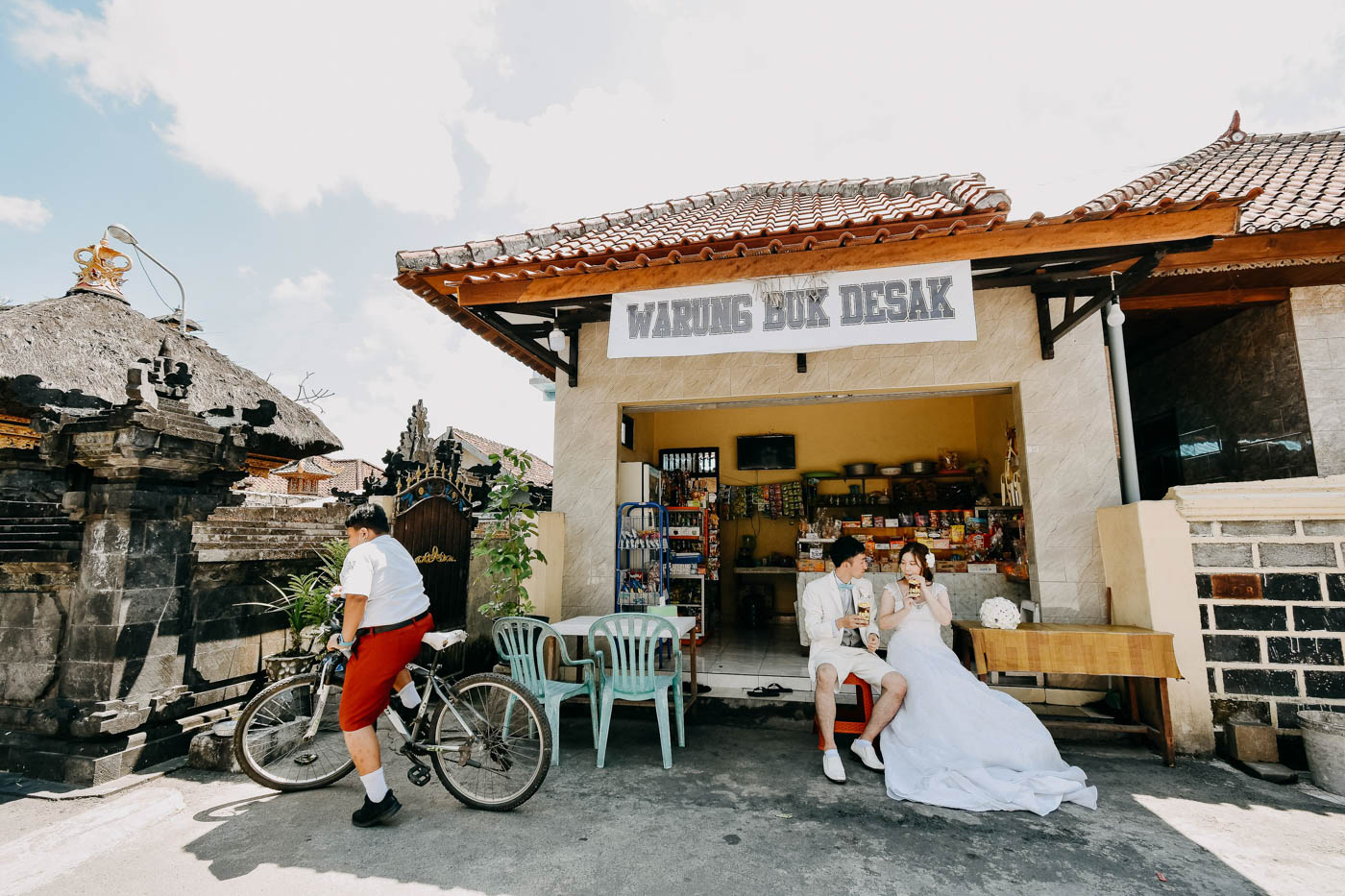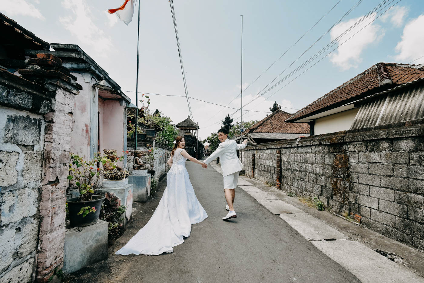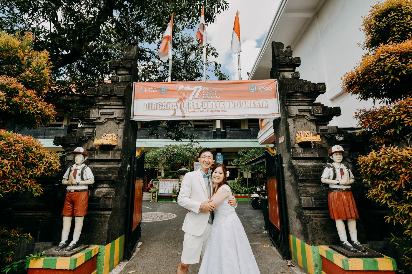 私たちが到着したときは、小学生が学校から帰ってくる時間でした。私たちがフォトウェディングを撮影しているので、多くの子供たちに注目されました笑。