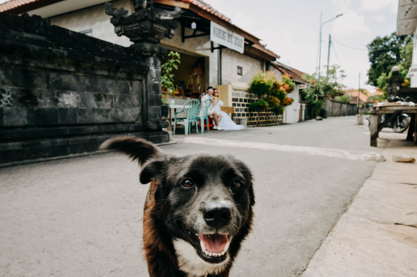 その後、ワルンで休憩。お店の看板犬も写真を撮らせてくれました。