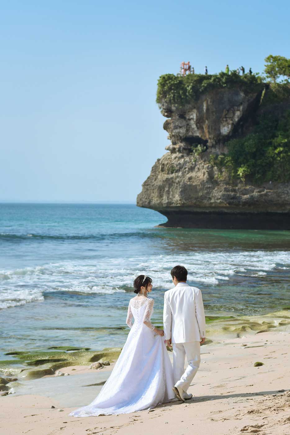 このビーチの特徴は、他のビーチにはない 迫力のある崖 があることです。崖の上からは広大なインド洋を一望でき、そこから眺めるサンセットはまさに絶景。ビーチ自体も美しく、どの角度から撮影しても絵になります。バリの美しい海を背景に、特別な瞬間を残したい方におすすめのロケーションです。