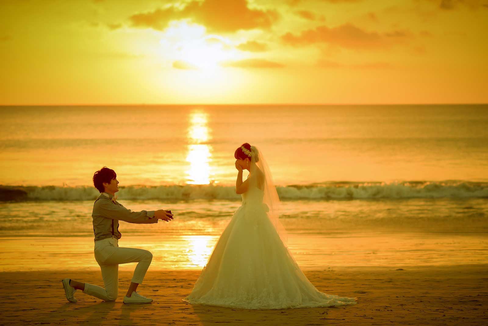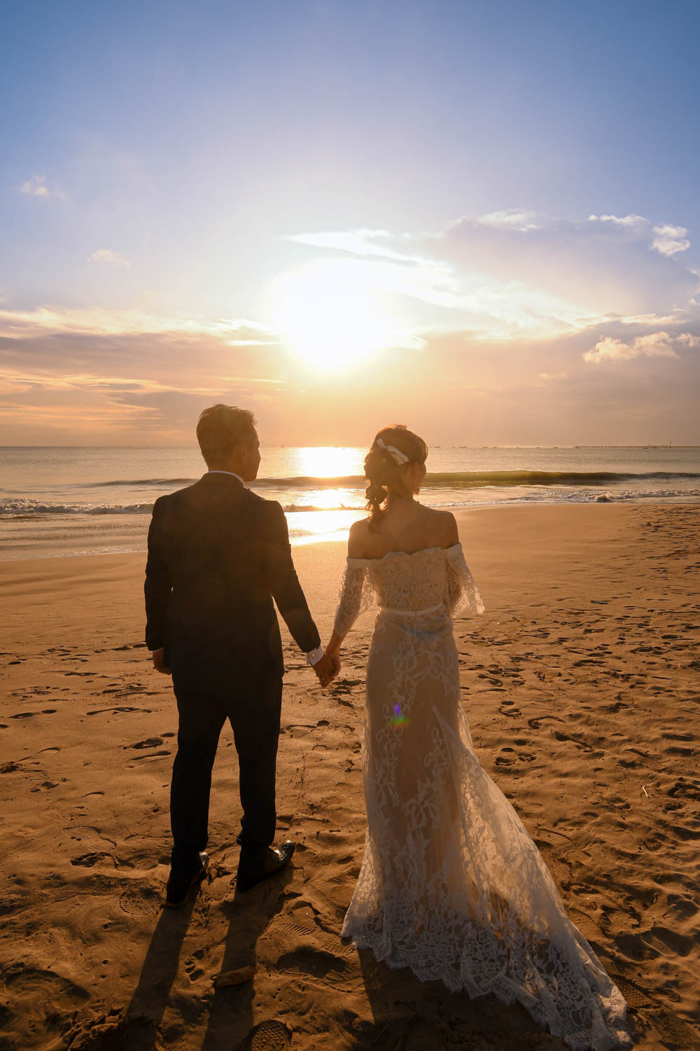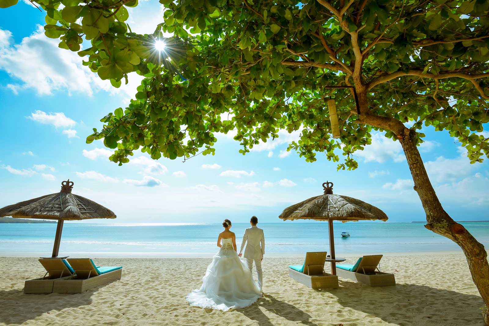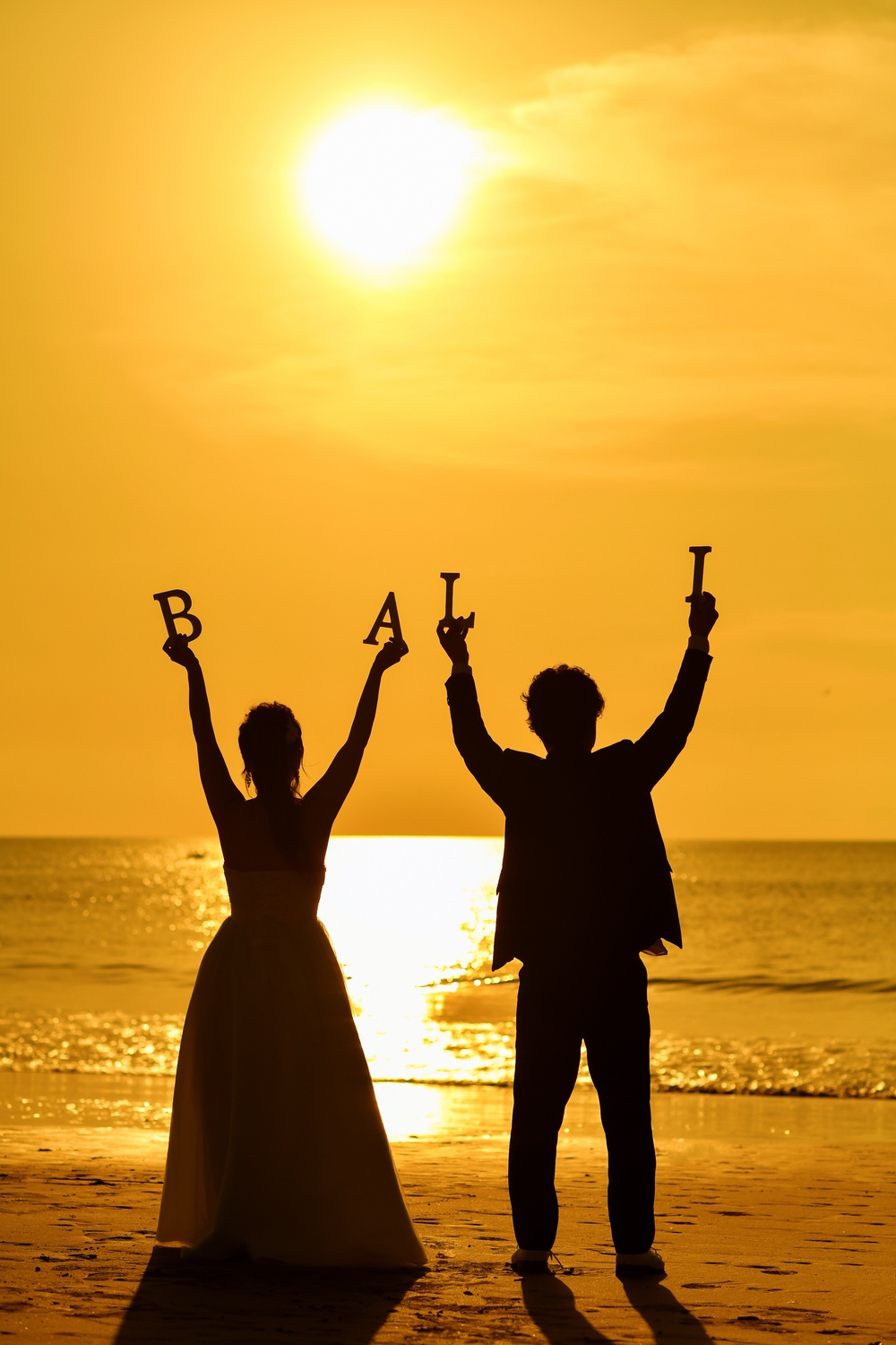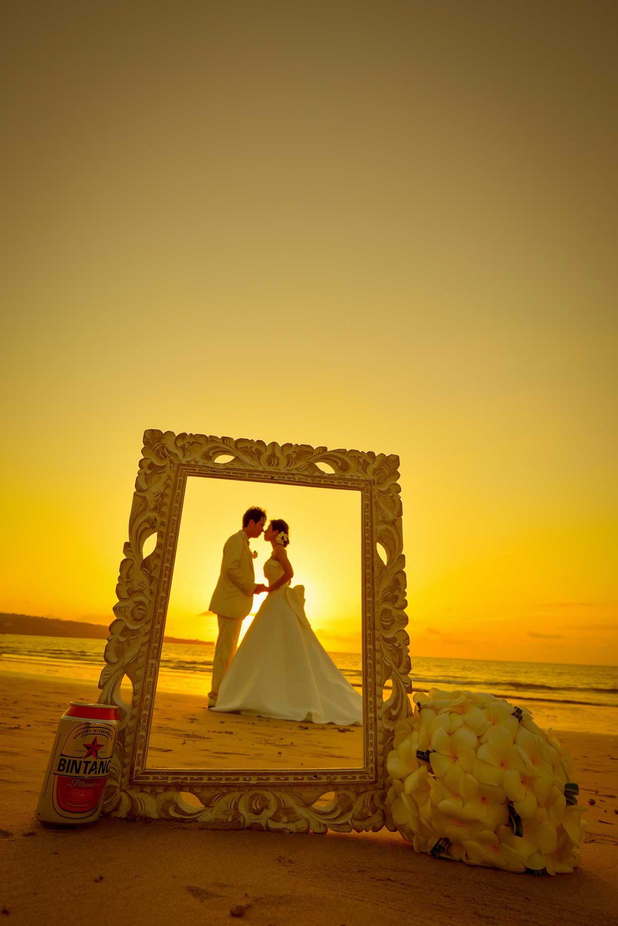 ◎場所:バリ島 ジンバラン ◎特徴:夕日の名所、白砂、ビーチ以外のロケーションは少ない ◎ジンバランビーチ沿いのホテルで撮るフォトプランもおすすめです! インターコンチネンタル・プラン